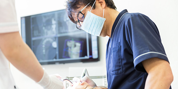 インプラント治療においてCT撮影が必須と考える歯科医院は多くありますが、自院でCTを導入している歯科医院はそれほど多くありません。正確な診断を行うために不可欠な精度の高いCTは非常に高額なため、採算が取れないことを理由として導入を見送っている歯科医院もありますが、当医院では、コストよりも患者様の安全を優先し、導入を決定いたしました。